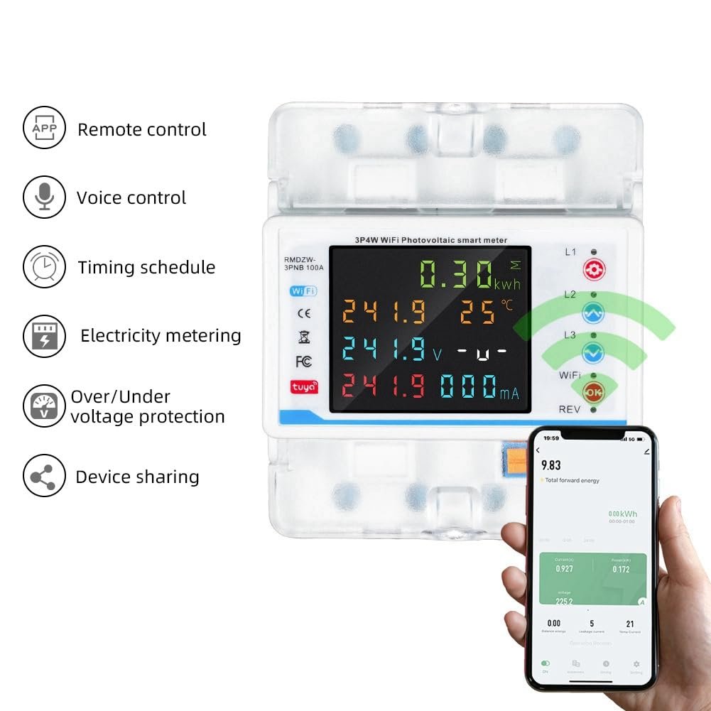 This smart protection and energy monitoring device is designed to provide comprehensive electrical safety and precise power management for single-phase systems. It integrates over-voltage, under-voltage, over-current, and under-current protection with adjustable delay control, ensuring stable operation and effective protection against abnormal electrical conditions. The built-in timer switch and bidirectional energy monitoring enable accurate tracking of power consumption and generation. Advanced protections such as voltage imbalance, current imbalance, phase loss, phase sequence, and high-temperature protection can be configured through the mobile app for enhanced system control. Residual current leakage protection, used with an external or built-in current transformer, further improves electrical safety. All protection parameters feature configurable thresholds with independent on/off control, allowing the device to be precisely tailored to residential, commercial, or industrial distribution applications.