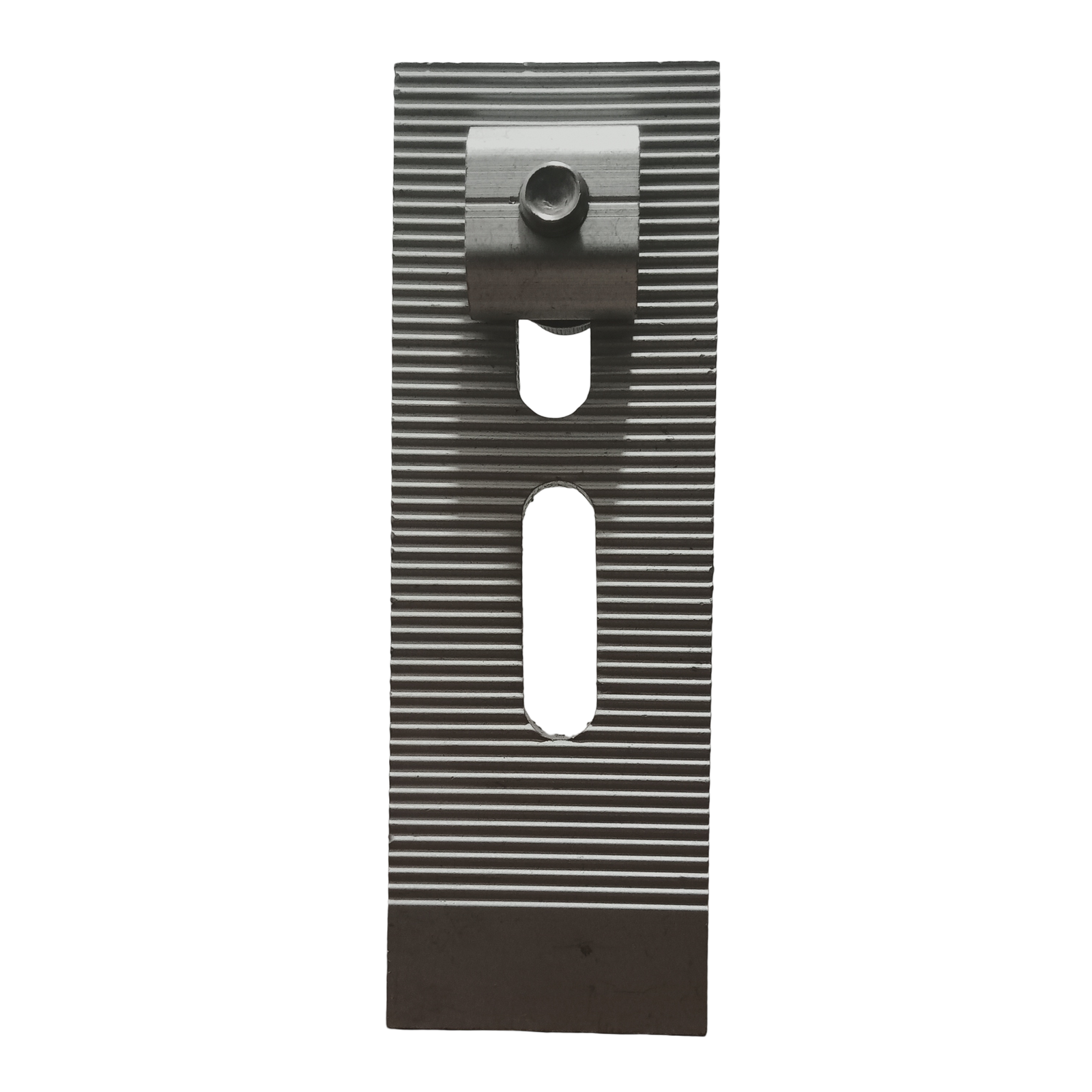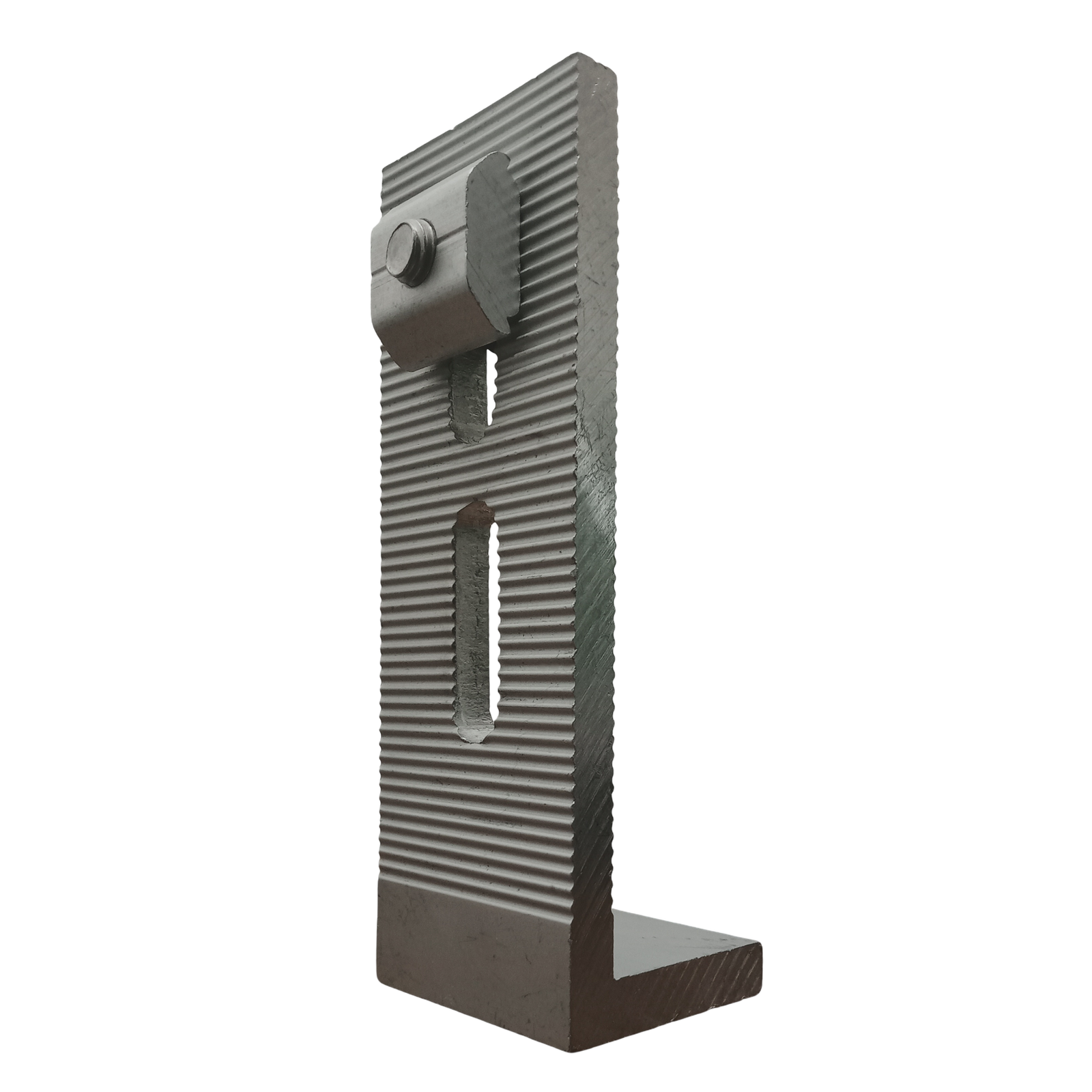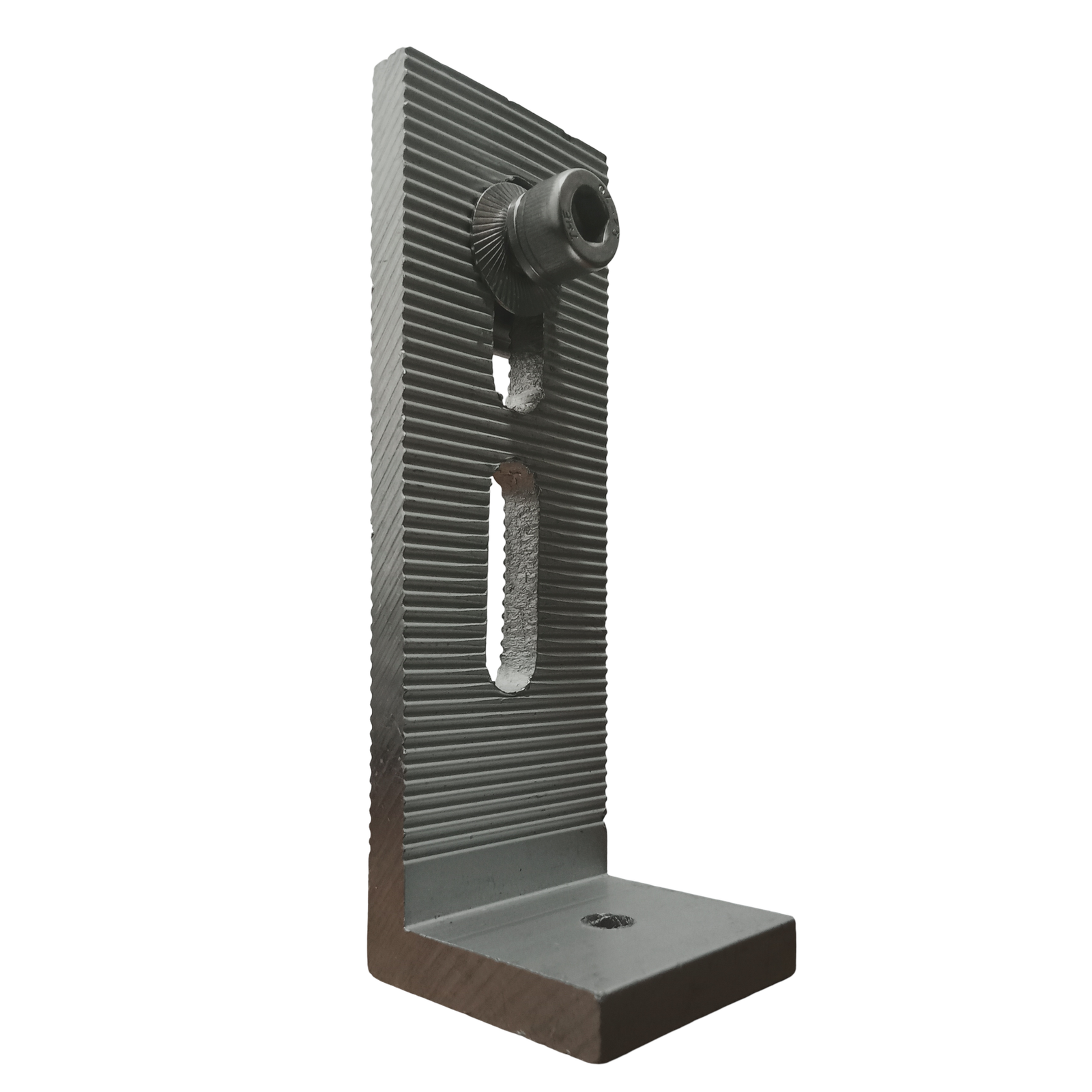 The extended serrated double hole L foot is a heavy-duty mounting bracket designed for secure and adjustable fastening in electrical, mechanical, and solar installations. Its L-shaped profile provides strong right-angle support, while the serrated surface improves grip and prevents slippage after tightening.