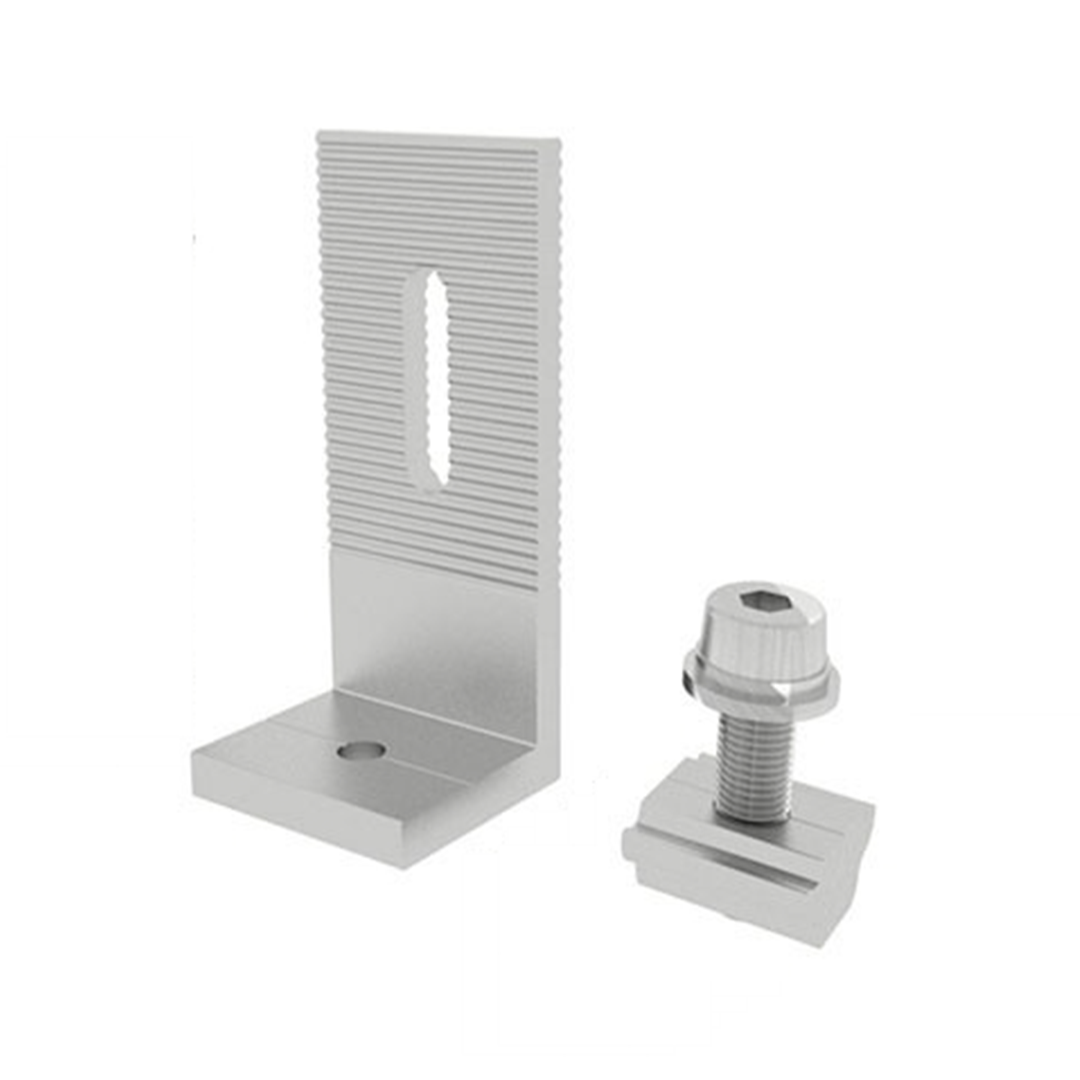 The serrated L foot is a mounting clamp designed for secure attachment of solar PV rails to metal roofing structures. It provides a stable mechanical connection between the roof surface and the mounting rail, supporting long-term system integrity in residential and commercial photovoltaic installations.